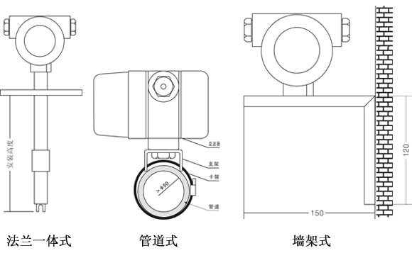 KE1105一般与传感器安装在一起,也可以与传感器分开安装。分开安装时,用户可使用安装附件将变送器固定在工艺管道、支架或墙壁上。