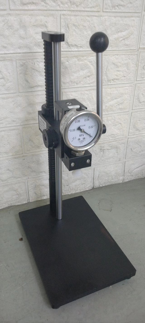 2、采用台式表座和杠杆把手,通过表头固定真空表而不是表壳传力,可以很轻松的完成打表测定,也不会因为表壳受力而影响指针读数,因此比手持式仪表测定更精确,操作更轻松。