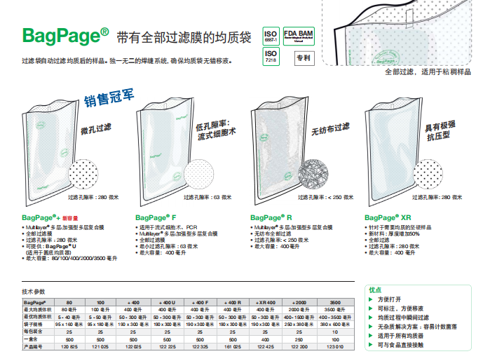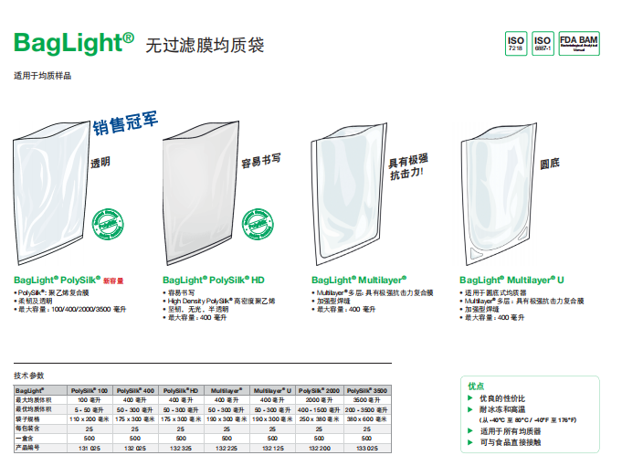1 安全滴水盘, 1 根电源线, I 份用户手册, 1 份快速使用指南, 1 包免费均质袋样品 |